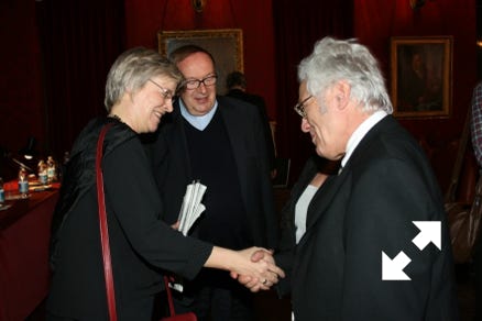 Frau Bongarts vom Goethehaus und der große Helfer Prälat Prof. Dr. Kemper (beide links) beim Empfang