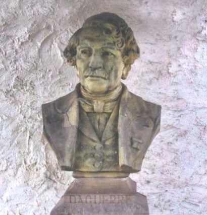 Die oben Mitte/rechts zu sehende Büste von Daguerre wurde zum Andenken an den Erfinder des Verfahrens von der Besitzerfamilie Schleussner am Eingang des Hofgutes aufgestellt.