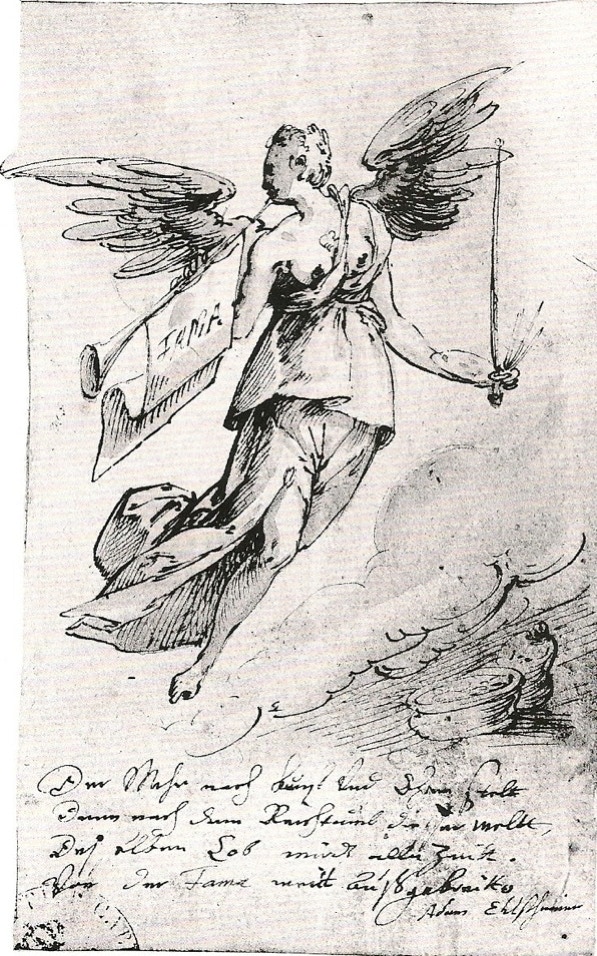 Das sind überwiegend keine schmeichelnden Worte. Die Fama eignete sich folglich nicht unbedingt zur Verbreitung von positiven oder idealistischen Vorstellungen. Elsheimer hat das als junger Wandergeselle sicher (noch) nicht gewusst. Bei seiner Genauigkeit und seinem selbstkritischem Wesen hätte er seine eindeutige Aussage wahrscheinlich nicht unter dieses Motiv geschrieben. Seine Gutgläubigkeit sollte ihm später Nachteile bringen.