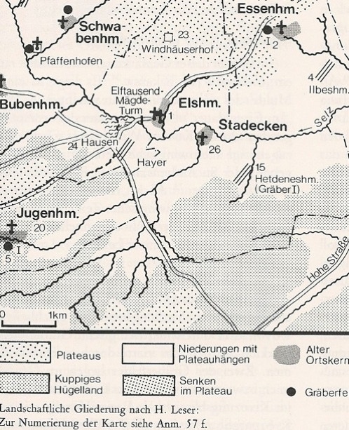 In Saulheim wiederum herrschte das Rittergeschlecht der Hundts, aus deren Haus Ritter Hermann, genannt Keppichin von Gau Wilershim 1328 die „Kapelle der 11000 Jungfrauen“ zu Husen (Hausen) bei Elsheim mit zwei Altären stiftete.Der markante diagonale Weg ist schon ab der karolingischen Zeit und später 1391 in der Literatur als „Renewich“ („Rennweg“ für eilige Sachen) nachgewiesen und gilt seit 800/900 als Handelsweg von Ingelheim (Rheinhafen Frei Weinheim 1471) über Hausen und Saulheim nach Nierstein bzw. Wörrstadt und Worms. Prof. Dr. Franz Staab bezeichnet ihn schon als „römische Verbindung“. Nach der Römerzeit wurden bis ins 18. Jahrhundert kaum Straßen gebaut, sondern vorwiegend römische benutzt. Das Selztal war von den Römern stark besiedelt, wie viele Funde (Dr. Haupt) zu beiden Seiten der Strecke bestätigen. Wie eine moderne Umgehungsstraße führte dieser Weg links der Selz nahe an allen Dörfern vorbei bis Wörrstadt. Der Weg ist auch trotz Flurbereinigungen auf neuen Karten noch sehr gut erkennbar und wurde kürzlich durch luftarchäologische Aufklärung bei „Hausen“ und anderenorts bestätigt.
